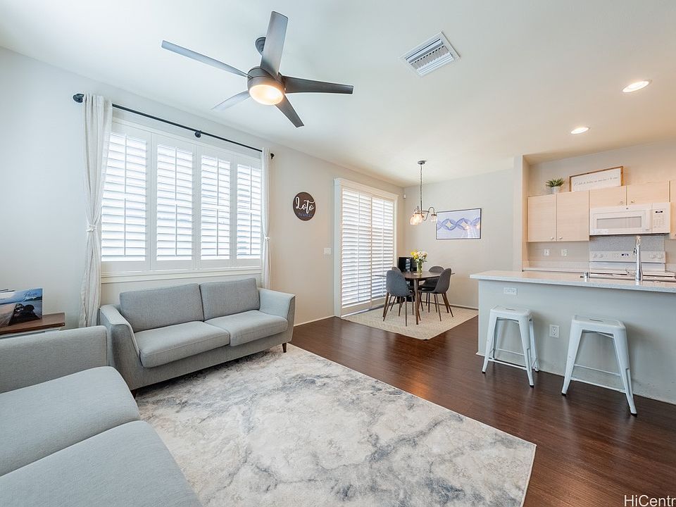 Great Opportunity and priced to sell in Seabridge! Don’t miss this well-maintained 3-bedroom, 2.5-bath home in the desirable Seabridge community. This two-story layout features thoughtful upgrades, including stylish plantation shutters throughout, and a bright, open living space that feels warm and welcoming. Upstairs, you’ll find a spacious loft that's perfect for a home office, playroom, or second living area, along with a generous primary suite that features a walk-in closet and dual vanity sinks. Enjoy being just minutes away from shopping, dining, and entertainment at Ka Makana Ali‘i, Laulani Village, Wai Kai Resort, Costco, and Kapolei Commons. Come and fall in love with all this home has to offer!