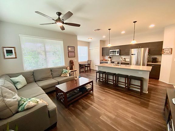 This home will be ready to rent on March 20th - It has been kept in immaculate condition and is only 3 years old. The kitchen and living area are open and spacious with beautiful cabinetry, counter tops, appliances and flooring. The luxury vinyl plank flooring goes throughout the entire house except for the tiled bathrooms. Features a spacious master bedroom and additional loft living space upstairs! The home is very efficient with the central AC and other electrical components and includes a solar hot water heater. The bills remain very low compared to similar homes. Water, sewer and Trash are all included in the HOA fee which would be included in the rent. There is a fenced in yard and a two care garage, as well as additional storage closets in the home. Small pets are welcome with a deposit. Located close to Grocery stores, Kamakana Ali'i Mall, Costco, beaches, dining, and more.