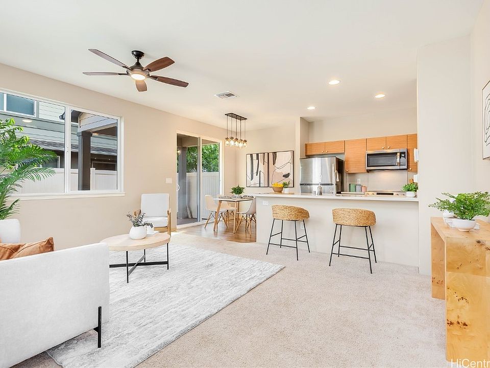 Skip the lottery and check out this CPR single family home in desirable SEABridge by Gentry with a third parking space! Enjoy an open concept first floor with a galley style kitchen with stainless steel appliances and a generous pantry that opens up to your dining and living room. Relax on your covered lanai and deck with a yard larger than most interior SEABridge homes. Upstairs you have a spacious primary suite with a large walk-in closet and dual vanity sinks in the primary bathroom. Two other bedrooms are located upstairs with a second full bathroom. This home was built with energy efficient items such as a solar water heater, dual pane windows, foam insulation and a 17-SEER high efficiency central AC system. Maintenance fee includes front yard landscaping, common area maintenance, sewer/water. This home is located minutes from shopping, restaurants and Ka Makana Alii mall. Ewa by Gentry has two community centers and one with a pool to enjoy. Schedule your showing today!