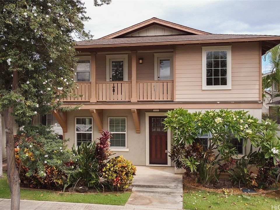 Nestled in the heart of Ewa Beach, this Beautiful 5 bedroom, 3 bathroom (1 BR and full BA are on the 1st floor), single family home, is located in the resort neighborhood of Ka Makana at Hoakalei. This home features 38 leased photovoltaic (PV) panels (which will significantly reduce your energy consumption), a study/den with 18 foot vaulted ceilings, a separate laundry room (located on the 2nd floor), a spacious kitchen with upgraded S/S appliances, (ceiling fans in all BRs and living room), central AC, solar hot water and a landscaped front and backyard. There is enough space in the backyard for a parking pad in the future. Your HOA dues include use of the community swimming pool, jacuzzi, tennis/pickle ball court, and fitness center (located at the Ka Makana Swim Club). Just a short car ride from the Hoakalei Country Club, dining, shopping, and entertainment.