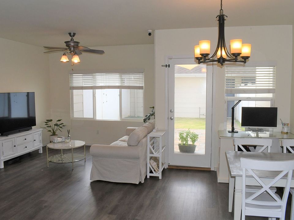 Well kept Ocean Pointe townhouse with 3 bedrooms upstairs, 2 full bathrooms upstairs and half bath downstairs. Small dog allowed upon approval with pet deposit. Garage across courtyard lanai and patio area, fenced in outdoor space. Vinyl plank flooring downstairs and carpet upstairs, New central air just installed and full sized washer dryer downstairs. Showing now, sorry no smoking. Small pet negotiable with pet deposit and $25 more a month. Available beginning of September Unit comes UNFURNISHED Application fee is $20 per occupant over 18 years of age.