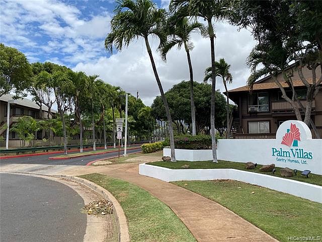 Ground floor two bedrooms one and a half bath, two parking stalls one covered one open located in Palm Villa. 2 Pets are OK . Maintenance fee includes sewer water common area parking. One story townhouse with large open lanai area great for children and or pets. Amenities include pool barbecue rec area. Laminate floors and carpet, ceiling fans, window AC'S. Washer and Dryer. Located by schools ,shopping, and freeways.