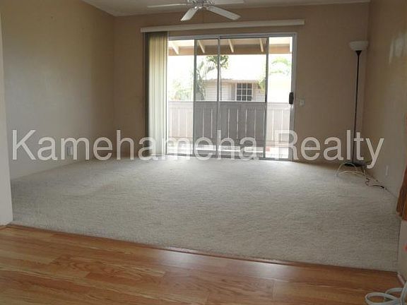 Ewa Beach - Palm Villas: A 2 bedroom 1-1/2 bath end unit townhouse apartment with lanai with one covered parking stall #311 and one open parking stall #371. Appliances include refrigerator, gas range/oven, garbage disposal, microwave oven/hood, front load large capacity washer and gas dryer, 2 window mounted air conditioners, 3 ceiling fans, and gas water heater. Upgrades include front load washer and dryer, laminate flooring in dining area and hallway, and ceramic tile flooring in the 1-1/2 bathrooms. Unit shows well and is well maintained. Water and sewer are included. Amenities include community swimming pool, recreation area, BBQ area, and resident manager. Call Stanley H. Shimabukuro (R) at 808-664-1244 for a showing appointment. Available on July 1, 2017. Note: Stanley H. Shimabukuro is father of Owner. Pet fee may apply dependent on pet. $10 application fee (cash or cashier's check) per family. www.Kamehameharealty.net Amenities: Swimming Pool, Guest Parking, Resident Manager, Rent: $1,700, Application Fee: $10, Security Deposit: $1,700, Available 7/1/17 Rental Terms: Rent: $1,700, Application Fee: $10, Security Deposit: $1,700, Available 7/1/17 Contact us to schedule a showing.
