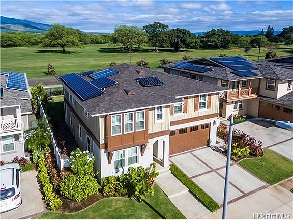 Almost Brand NEW! Why wait for new construction? This 4 Bdr/3 Bth Plus den (5th bdr) home in KaMakana @ Hoakalei is BEAUTIFUL! Hardwood and Luxurious Carpet cover the floors. Solar panels (Owned), Open family style kitchen with stainless steel appliances, granite countertops, and large island. Quality upgrades throughout including decorative tile and custom window covering. Central air and fully landscaped front and backyard with underground sprinkler system. Enjoy golf course views from most rooms and the upstairs lanai. Association fee includes cable, Internet and telephone, Pool, gym, tennis court.