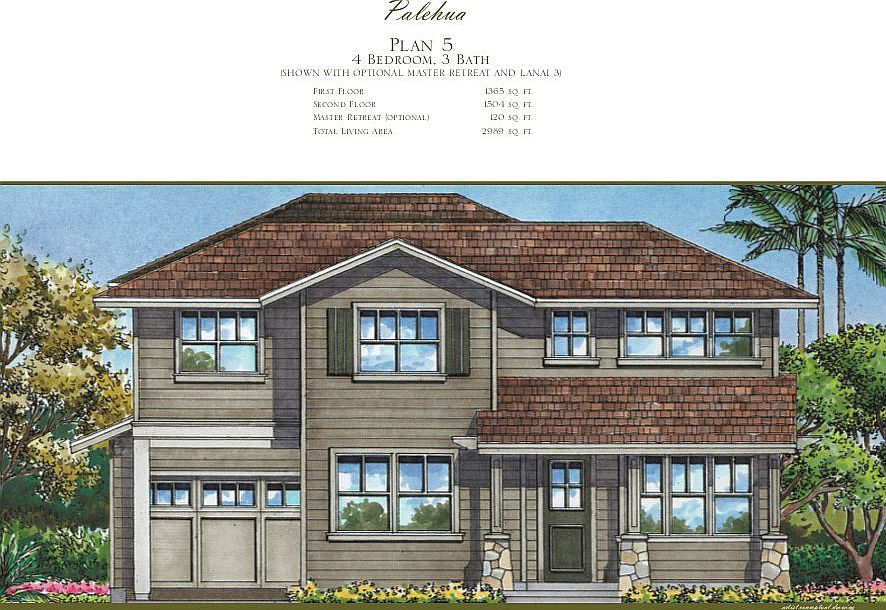 The largest Halekea floor plan. A beautiful spacious home with high ceilings and open floor plan. Perfect for a growing family and entertaining guests. Featuring a luxurious master bedroom upstairs with vaulted ceiling and balcony overlooking the driveway. An adjacent master retreat with a spacious balcony, a walk in closet, and a master bathroom with soaking tub, his-and-her sinks plus a vanity. Upstairs also has a laundry room with stainless steel front load washer and dryer, full bathroom, computer nook, and two bedrooms. Downstairs has a huge open floor plan, carpeted formal living room near the main entrance with open ceiling, dining room and chandler, spacious family room with vaulted ceiling and built in home theater speakers. An open gourmet kitchen with an island, stainless steel appliances, a walk in pantry, and built-in microwave and oven. Marble flooring stretches across the first floor. A bedroom and full bathroom are also located on the first floor, perfect for guests or in-laws. Lanais at both front and rear entrances, a landscaped yard with irrigation system, spacious 2 car garage with belt driven garage door motor, a long driveway to fit 3 vehicles or entertain guest outdoors, central air conditioning, solar water heater, 120 gallon electric water heater, CAT5e wired home network in every room, and ceiling fans throughout the home. Located within walking distance to Hawaii Prince Golf Course and Laulani Village Shopping Center. A short drive to Ka Makana Ali'i Mall in Kapolei. TMK does not match public record. Approximate total floor area is 4,106 sqft.
