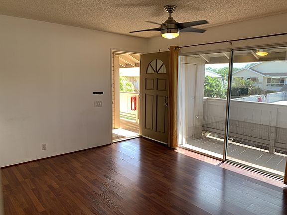Great location with laminate flooring throughout and outdoor patio. Washer/dryer, 2 reserved parking stalls and stainless steel appliances. Trash fees included. Electric, Gas & water/sewer are separate. Great location. Open kitchen and living area with outdoor patio space. Laminate flooring throughout. Stainless steel appliances and washer/dryer. Nice size bedroom with AC. Two reserved stalls and lots of guest stalls. Palm Villas II is located in Ewa Beach with neighborhood parks and great community recreation center with pool and BBQ. Conveniently located 5-10 minutes from grocery stores, dine in or take out restraunts, Starbucks, Safeway, Ross' and more. Golf courses and entertainment surround. Easy access to Kapolei "the Second City" and its many shopping options.