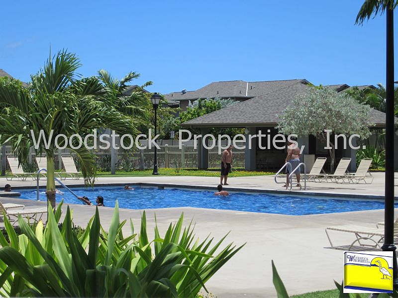 Montecito/Tuscany III in Ewa Beach, Golf Course across the street! 2-story, 4 BD, 2.5 BA, 2-car garage, single family home with CENTRAL A/C. Enjoy the sliding glass doors leading to a private fenced landscaped backyard with sprinkler system and patio with retractable awning covers. Formal dining area, sunken living room, and decorator colors. Kitchen has lots of cabinets, Corian counter-tops, refrigerator, electric oven/range, microwave, dishwasher, and disposal. Master suite has a walk-in closet. Complex with pool, BBQ, playground and golf course. Solar hot water, Full sized energy efficient washer and dryer. Water, Sewer, Trash, Parking, and Yard Service included in rent. 1-year lease with military clause, good credit and renters insurance required. No smoking. No pets. $20.00 application fee per adult.