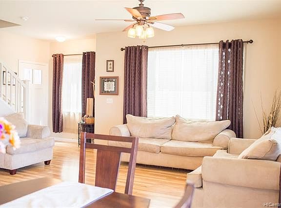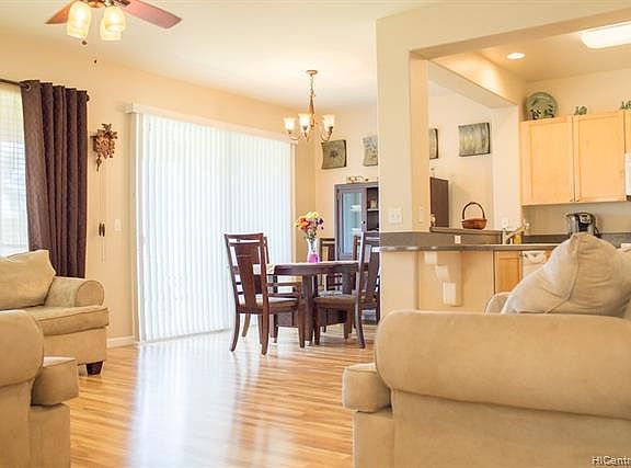 Showings has to be done by appt. only with tenants permission. 4BR/2.5BA Single Family House Great location w/ Golf Course views and no back neighbors. Wood laminate flooring in living/dining area. Beautiful kitchen with breakfast bar. This home offers 4 large bedrooms and a bonus area by the stairs. Low maintenance landscaping with large covered lanai. 2-car garage and the driveway fits 2 cars! Community pool close by. In walking distance to new shopping center and restaurants. Water & sewer is included in the rent. Available July 12 or possibly earlier. Good Credit 700 or more & 20 dollars application fee req. No smoking please. Pet friendly with owners approval & additional deposit for a Pet and insurance . Kapolei is only a short drive away and there you will find: Ka Makana All'i Mall, Costco, Safeway, Foodland, Target, Wal-Mart, Kmart, Chili's, Outback, and much more! No solar. No section 8. Renter's insurance is highly encouraged.