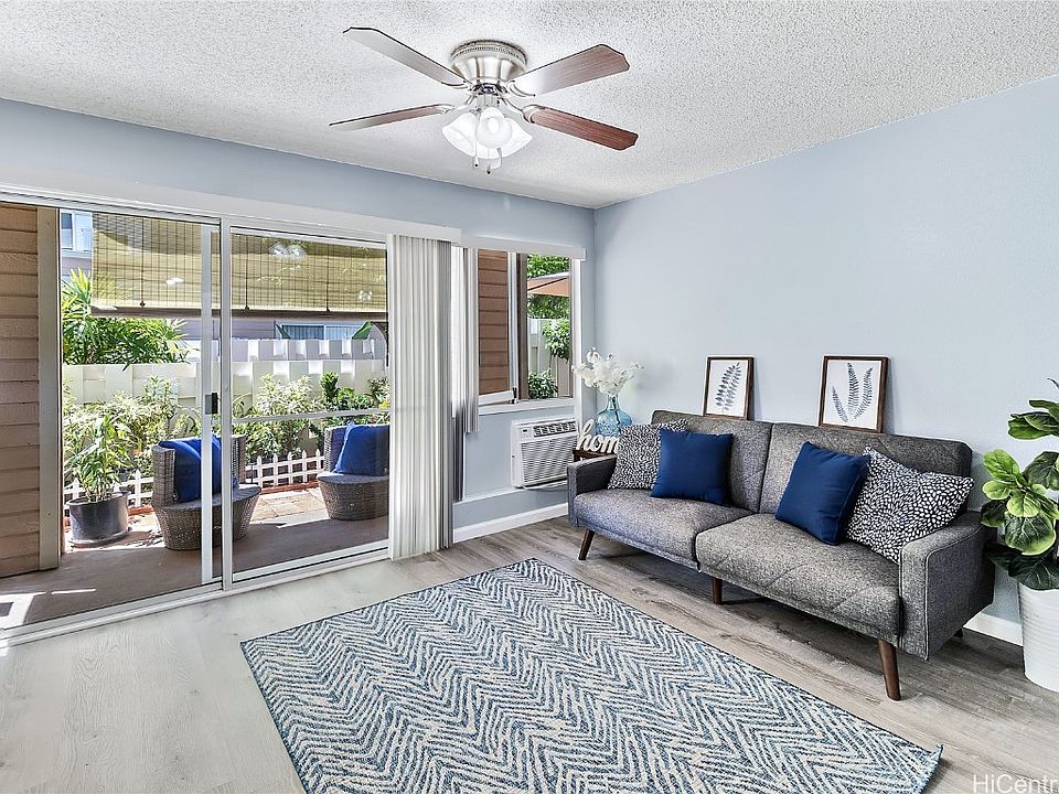 THIS IS A MUST SEE! GROUND FLOOR AND MOVE-IN READY, 2 Bedrooms/1.5 baths/2 parking townhome unit. This charming and well-maintained home is perfect for a starter home or investment opportunity. This beautiful home has an upgraded bathroom, gray wood-like vinyl flooring throughout the home and stainless steel appliances. Stay cool during the summer season with window AC units and ceiling fans in the living and dining area and in each bedroom. Relax in your very own private fenced courtyard and enjoy all the beautiful potted plants and vegetables that are included with the home. For more storage space, this home includes outdoor storage behind the covered parking space and a shed in the courtyard. Conveniently located near shopping centers, groceries, restaurants, parks and many more. Don’t wait and visit this clean and bright home during the first open house on Sunday, June 11th from 2-5pm or with your favorite realtor.