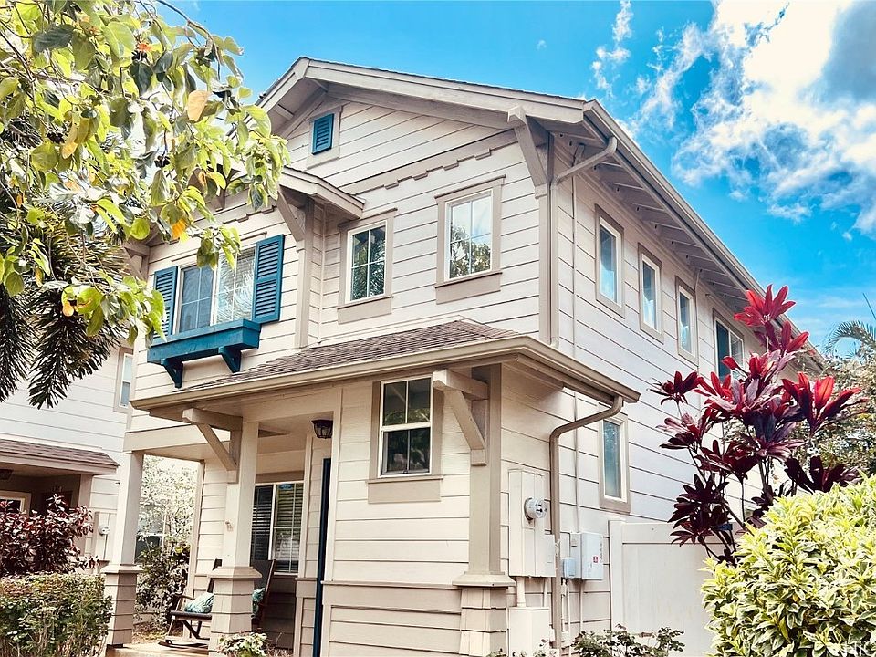 NET METERED, OWNED, 19 PANEL PV SYSTEM! 3 BEDROOM, 2.5 BATH, 2-CAR GARAGE, VERY WELL KEPT, SINGLE FAMILY HOME WITH AN "ADDITIONAL" ROOM DOWNSTAIRS THAT CAN BE USED AS A BEDROOM OR OFFICE SPACE! Located in the beautiful Ke Aina Kai subdivision of the Ocean Pointe Master Planned Community, this 202 model home (see floorplan in pictures), is one of the most sought after floorplans due to its open spaces and design. VERY IMPORTANT: NEWER AC UNIT INSTALLED IN 2020! The Rheem Classic Plus® Series RA17 uses a "Two Stage" Copeland Scroll™ Ultra Tech™ Compressor that modulates between two capacity> settings - 67% and 100% - providing more precise temperature control, lower humidity and greater efficiency in comparison to single stage compressors. It uses 70% fewer moving parts which also increases efficiency and reliability! BOTTOM LINE...lower electric cost to keep your home COOL year round! NEW DISHWASHER TOO, INSTALLED MARCH 2022. You're going to love the outdoor space as well, with an extended lanai concrete slab perfect for your outdoor furniture. In close proximity to restaurants, shops and public transportation. A BEAUTIFUL, WELL DESIGNED HOME, WITH LOW COST OF OWNERSHIP!