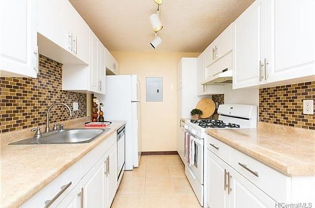 Move-in condition, ground floor and corner end 2-bedroom 1.5-bath with 2 parking stalls. With an updated kitchen, tile and wood laminate floors. Fairly new range and full size washer & dryer. Few minutes away from the new Ka Makana Alii shopping center and UH West. Being sold As-Is . First Open House on December 10, 2017 2:00 to 5:00p.m.