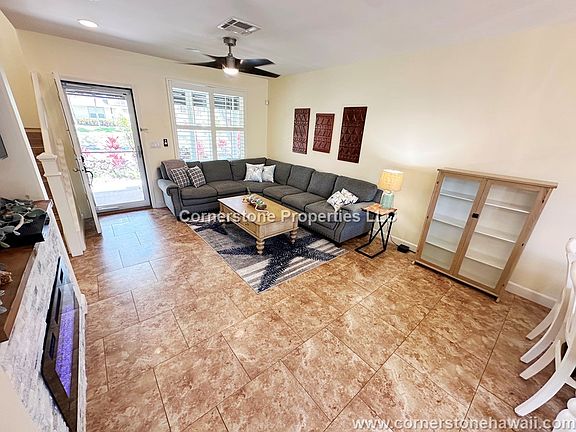 Enjoy living in this partially furnished, upgraded 3 bedroom, 2.5 bathroom, 2 parking townhouse at the Townhomes at Ka Makana at Hoakalei in Ewa Beach. This unit is near golf courses, parks, schools, shopping center, and restaurants. PROPERTY DETAILS: - Unit Type: Townhouse - Split level - Approx. Square Footage: 1247 - Year Built: 2011 - Bedrooms: 3 - Bathrooms: 2.5 - Parking: 2 Car Garage UNIT FEATURES: - Stacked washer/dryer - Dishwasher - Disposal - Refrigerator w/ Ice Maker - Electric stove/oven - Freestanding Microwave - Range hood - Central AC - 4 Ceiling Fan's in Bedrooms and Living Room - Electric Fireplace - Patio - Front Porch - Window Coverings: Plantation Shutters - Flooring: Laminate & Ceramic Floors - Solar/electric water heater - Furnishings: Subject to availability upon request. AMENITIES: - Guest Parking - Pool - Jacuzzi - Fitness Center - Playground - Parks - Site Manager UTILITIES: - Included: Water/sewer, Basic Cable & Internet - Tenant Responsibility: Electricity, Additional cable + internet, phone, yard, pest & gas (if applicable) LEASE TERMS: - No smoking - Pets negotiable to one (1) small dog. Sorry, no cats. - Available 6/13/2025 - Lease Length: 1 year - Professional cleaning required upon move out by an approved vendor of Cornerstone Properties. - Renter's insurance required: with $300,000 liability coverage and Cornerstone Properties listed as additionally insured/interest. - All adults 18 years old and older must apply. - Application fee: $35 (Non-refundable) PROPERTY CODE: 1487WEL Cornerstone Properties, LLC: RB-20789 *DISCLAIMER: If approved with a pet, at the time of signing a lease, a pet deposit will be due (up to one month's rent) along with the security deposit. This property is currently tenant occupied therefore in-person showings are unavailable at this time. If you submit a rental application, you do so with the understanding that the application fee is non-refundable, and it will be processed as a Sight Unseen application. Cornerstone Properties is not responsible for any inaccuracies or misprints on this website or other subsequent websites and reserves the right to make changes without notice. Our rental units are considered available until an applicant is approved, the security deposit is paid, and the lease is executed. Please be advised that although a property is listed as available, it could be in the process of a lease signing or may have just been rented. Please call our office to inquire. All availability dates are approximate and not guaranteed.