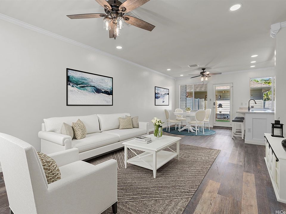 Experience the best of island living from this tastefully updated and impeccably maintained 3 bdrm/2.5 bath townhome at Ka Makana at Hoakalei in Ewa Beach. Features include a modern open kitchen with sleek quartz countertops and stainless steel appliances, luxury vinyl plank flooring and carpet, central AC, and a private gated backyard with spacious covered lanai – perfect for relaxing or entertaining. Enjoy the Ka Makana resort-like amenities including swimming pool, spa, tennis court and more! Ideally located near Hoakalei Golf Course, Wai Kai water park, and shopping & dining options. Must see to appreciate! A few photos have been virtually staged(enhanced).