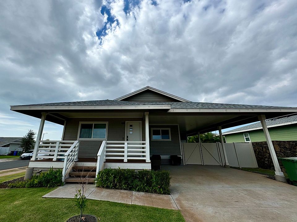 DESCRIPTION: Available on January 15, 2025 -- HI Roots Realty presents this single-level 3 BR, 2 BA with 2-car carport parking single family home located in the highly desired Hoopili community. This 2022 built plantation style home comes with split AC, ceiling fan, stainless steel appliances, fenced, private yard, master walk-in closet with washer/dryer in unit. Hoopili community features children/dog parks, new and developing neighborhood schools, community center, pool, easy access to the freeway on/off ramp, with convenient location near the Kroc Center and the Ka Makana Alii Mall which offers shopping, restaurants, entertainment and more! No utilities included - tenant responsible for all utilities. $30 application fee per applicant. Applicants will be subject to credit/background/residency/employment checks. Minimum credit score of 600. Minimum income 2x rental amount. Pets negotiable. No smoking. 1 year minimum lease term. Renters insurance will be required. Lic RB-22309. KEY FEATURES: Year Built: 2022 Sq. Footage: 1092 Bedrooms: 3 Baths: 2 Parking: 2 (carport) Lease Duration: 1 Year Deposit: Equivalent to one months rent Pets Policy: Negotiable Laundry: W/D In Unit Keys/remotes: 1 door 1 mail 4 Split AC remotes Living room & 3 bedrooms 1 Ceiling fan remote liiving room