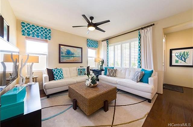 Gorgeous 4 bedrm 2.5 bath 2 car garage with covered lanai and fenced in yard model home in the gated community of Kipuka in Ocean Pointe. Conveniently near shops, schools, golf, and entertainment. Just a little over two years old, this home offers tons of benefits! A must see! Please call Evelyn C. Dayton, RA directly at 808-781-7959 for more information or to schedule a showing. Island Realty Group, LLC RS-62579 http tours.bluegingerstudios.com/818743?idx=1