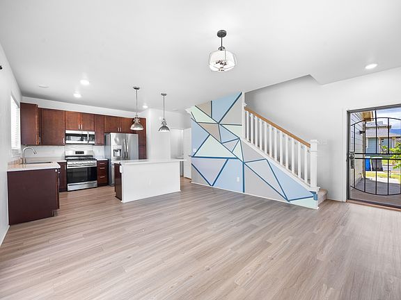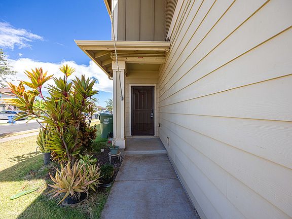 Built in 2018, this pet-friendly corner-lot attached single family home at 91-1569 Laauala St, Ewa Beach delivers 1,254 sq ft of stylish living on a 4,228 sq ft fenced lot. Ten PV panels and a Tesla Powerwall slash electric costs while split A/C keeps every room cool. The open main level features luxury laminate floors, an island kitchen with gas range, microwave hood, dishwasher, disposal and full-size fridge, plus a half bath and direct access to a covered lanai and oversized yard. Perfect for weekend BBQs. Upstairs, a bright primary suite joins two additional bedrooms and a second full bath; washer/dryer, ceiling fans and a two-car garage with driveway parking add convenience. Ho'opili residents enjoy parks, dog parks, community gardens, farmers markets and quick drives to Costco, Ka Makana Ali'i, UH West O'ahu and the H-1. Rent is $4,000 per month plus utilities. Security deposit equals one month's rent. No smoking. Available now! Built in 2018, this pet-friendly corner-lot attached single family home at 91-1569 Laauala St, Ewa Beach delivers 1,254 sq ft of stylish living on a 4,228 sq ft fenced lot. Ten PV panels and a Tesla Powerwall slash electric costs while split A/C keeps every room cool. The open main level features luxury laminate floors, an island kitchen with gas range, microwave hood, dishwasher, disposal and full-size fridge, plus a half bath and direct access to a covered lanai and oversized yard. Perfect for weekend BBQs. Upstairs, a bright primary suite joins two additional bedrooms and a second full bath; washer/dryer, ceiling fans and a two-car garage with driveway parking add convenience. Ho'opili residents enjoy parks, dog parks, community gardens, farmers markets and quick drives to Costco, Ka Makana Ali'i, UH West O'ahu and the H-1. Rent is $4,000 per month plus utilities. Security deposit equals one month's rent. No smoking. Available now!