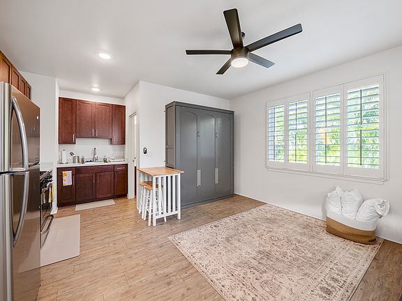 Welcome to our charming and fully-equipped ADU studio home located in the heart of Ewa Beach, Hawaii! This modern, private studio offers the perfect getaway for solo travelers, couples, or anyone looking to experience the beauty of Oahu while enjoying the convenience of a peaceful, well-appointed space. The space This fully-equipped ADU studio home is the perfect place to recharge. Designed with comfort in mind, it features a private entrance, cozy furnishings, and all the amenities you need to feel at home. Our studio home features: 1 Queen murphy bed with comfortable linens Fully equipped kitchen with stove, microwave, and refrigerator Cozy living area with a flat-screen TV and comfortable seating sofa Workspace table Private bathroom with shower Washer and dryer for laundry use Air conditioning and ceiling fan to keep cool High-speed Wi-Fi throughout the space Free parking on the premises Location: Located in the family-friendly neighborhood of Ewa Beach, close to shopping centers, restaurants, and beaches Only 15 minutes from the famous Ko Olina lagoons and resorts A short drive to the Pearlridge Mall, Hawaiian Railway, and Waikele Premium Outlets Quick access to main highways to explore the rest of the island Why You'll Love It: Quiet and safe neighborhood Ideal for those seeking a peaceful retreat with easy access to Oahu's popular attractions The space is designed for your comfort with modern amenities and thoughtful touches Enjoy a relaxing stay with the convenience of local eateries, parks, and beaches just a short distance away! Private entrance with keyless entry 1 month minimum lease Fully furnished studio home Washer and dryer available for use Utilities included