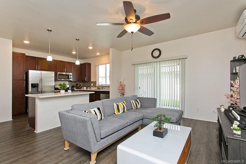Welcome to this beautiful single family attached home at Hoopili. Well maintained 3 bedroom, 2.5 bath located on cul-de-sac. Built in 2017 but original owner moved in 2018. Vinyl plank floors in living room , kitchen and dining area,corian counter top with nice back splash, corian kitchen Island with drawers. Stainless steel appliances. Split AC & ceiling fan in the living room & every room. No maintenance fee. Open house : Sunday, 2/21 from 1pm to 4pm. Appointment only.