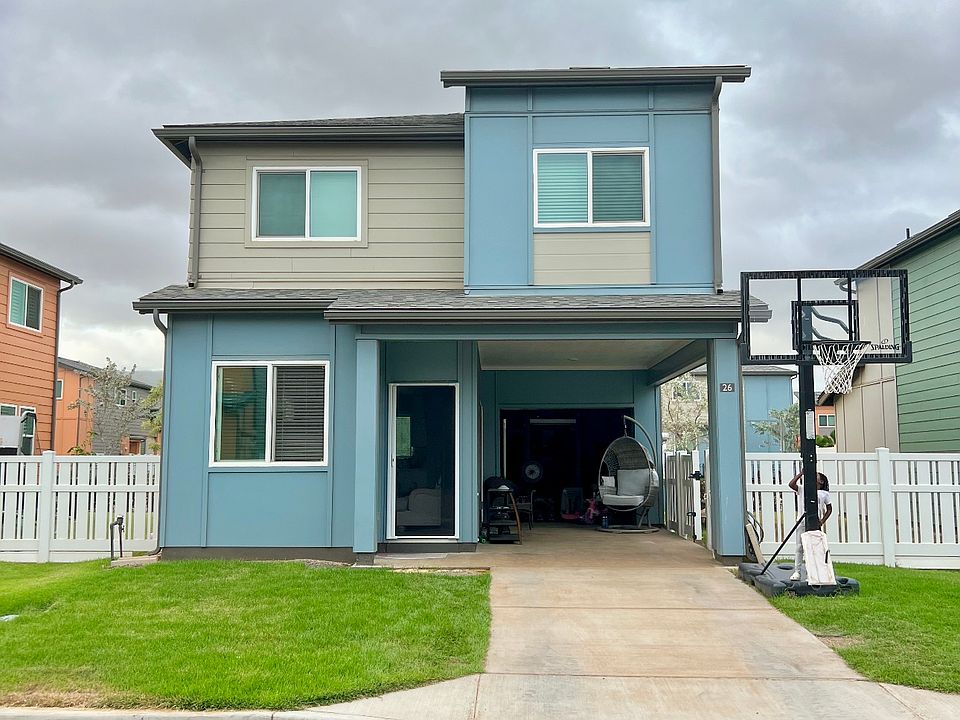 Built in 2022, this modern home is immaculately kept and will be available to long term renters. No utilities are included in the rent. There are 5 total split AC units throughout the home, including in each of the bedrooms. The home is pet friendly, with a wrap around fence enclosing the back and yard to allow animals or children to play outside safely. Pets will be screened and only allowed upon approval and with a pet deposit. Located near Kapolei shopping at Ka Makana Ali'i Mall, dining, Costco, Target, Home Depot, H-1 Freeway, Beaches, Water parks and more. This is no smoking home.