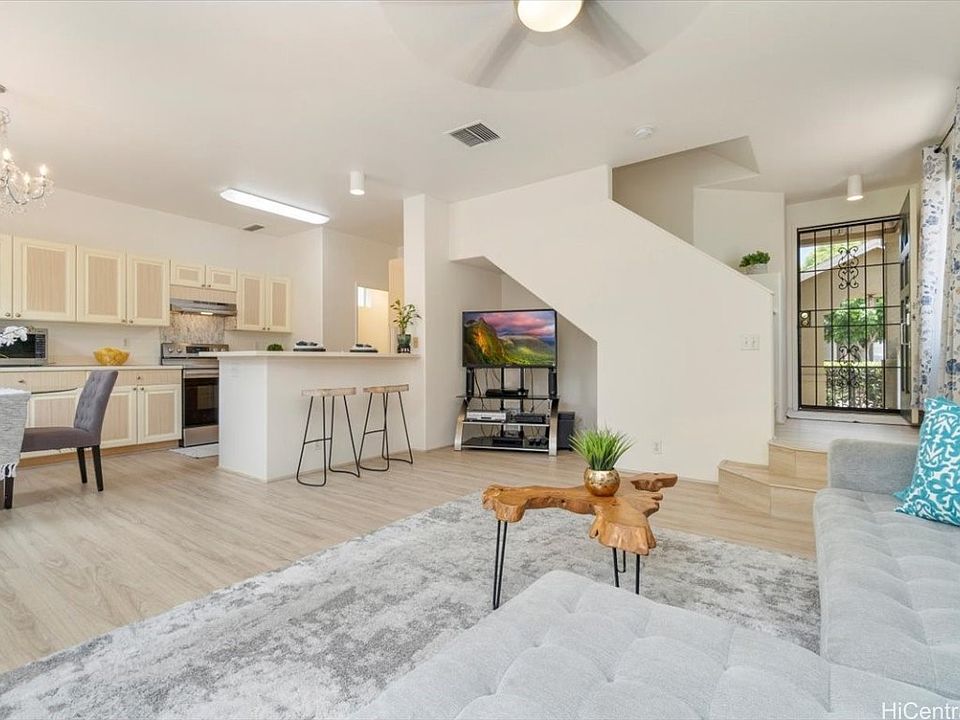 A great starter home or move on up to an upgraded condition 3Br/2.5Ba home. Efficient and functional floor plan with fenced in patio space, perfect for outdoor enjoyment. Primary bedroom has an extension room; great use for work/office space or nursery room. Quality improvements include new vinyl wood plank flooring, fresh interior paint, reglazed tubs/shower walls, a brand new central AC exterior unit and more to appreciate. The $513 monthly maintenance fee includes water, sewer utilities and common areas and monthly $42 to Ewa Gentry Association. Located in Ewa Gentry's Terrazza community with short distances to great school district such as Holomua Elementary, community park and swimming pool, dog parks, golf courses, shopping centers and mall, beaches, Wai Kai lagoon, and so many more essentials within the Ewa Beach neighborhood. VA approved community project.