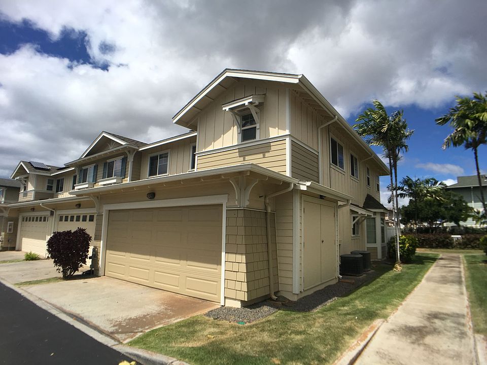 Corner end unit with gated yard. Pets negotiable! Enjoy the pool this summer. Open living and kitchen area with half bathroom downstairs. Large master suite with walk in closet. Two guest bedrooms with shared jack and jill bathroom. Great place to call home! Close to the entrance, pool and guest stalls. Pets negotiable! Spacious end unit offers additional windows for great natural light and that single family home feel. This unit is in great shape and features wood floors downstairs and carpet in the bedrooms. Central A/C, 2 car garage, open living/dining room and kitchen. Built in desk/office nook at the top of the stairs, great for a computer room or home office. Brand new washer, dryer and dishwasher. Nice fenced in courtyard. 1 year rental agreement to start. Rent includes yard service and trash fees. Water/sewer and electric are separate. No smoking. Pets negotiable. We do not accept Section 8. Offered for rent by Innovative Property Management, LLC. License No. 20465. Spinnaker Place Townhomes located in the planned community of Ocean Pointe. Great complex with a rec area and pool. Lots of parks and open spaces in the area. Easy access to shopping, dining and entertainment in Kapolei and Ewa Beach.