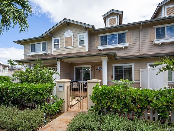 Amazing updated Spinnaker Townhouse with a FULL driveway in the heart of Ewa Beach. This highly desirable home looks out to the green space from your fully fenced, freshly landscaped front yard. One of the very few homes in the development that have a FULL DRIVEWAY to park TWO additional vehicles as well as TWO vehicles in the covered garage. This freshly painted interior, has 3 full bedrooms, 2.5 baths and the lowest maintenance fee for a townhouse in Ewa Beach. New fans, LED lights, Nest thermostat, laminate flooring, SS appliances, and updated kitchen make this home move-in ready. Conveniently located close to schools, beaches, malls, shops, and restaurants around the corner from Laulani Village mall. Amenities include a pool, hot tub, BBQ and clubhouse. Balance of AHS warranty.