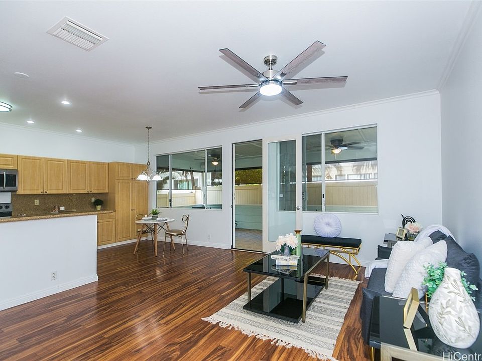 Come and view this two-story 4-bedrooms, 2.5 bath home located in Ewa Gen Terrazza. The home features large enclosed lanai for extra entertaining space and/or simply a relaxation area. It is also equipped with vinyl flooring throughout the lower floor, stairs and upper floor hallway while all the bedrooms have newly installed carpet. The interior of the home has been freshly painted with new ceiling fans throughout. The kitchen is equipped with stainless steel appliances and several cabinetries for storage and organization. The home is in close distance to the swimming pool and recreation area as well as grocery stores, shopping centers, parks, schools, golf courses etc.