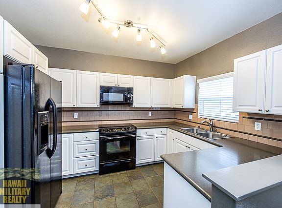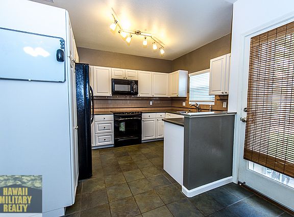 Fresh coat of interior paint and new carpet on stairs, second floor and upstairs bedrooms. Very nicely upgraded unit with a preferred, private backyard. This 3 bedroom 2.5 bathroom townhome in Fairway's Edge has a newer washer and dryer, tile flooring downstairs, tiled bathroom with updated sink, tile kitchen backsplash, updated lighting fixture, ceiling fans, central AC and a detached two car garage. Near the newer shopping center in Ewa Beach that includes Safeway, Ross, Petco, City Mill, Starbucks, and numerous restaurants. Fairways Edge is professionally managed by an on site manager and features amenities such as a swimming pool, hot tub, BBQ grills and pavilions with tables and chairs.