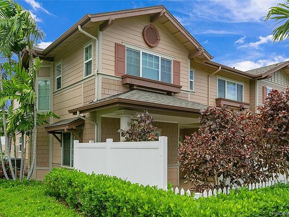 Don't want a condo, but a single family is beyond reach? Here's the solution! Spacious 3-bed, 2-1/2 bath townhome with 2-car GARAGE and fenced courtyard in desirable Town Homes at Fairways Edge. Downstairs, the open concept living room, dining area, kitchen and half bath are graced with beautiful ceramic tile floors, and Corian countertops in the kitchen. Full size W/D in the finished garage. Upstairs you'll find a bonus space with built-in desk, the bedrooms, and 2 bathrooms. Master suite includes walk-in closet. There is lots of guest parking near this unit. Conveniently located in Ocean Pointe, just minutes from all the stores and services in Laulani Shopping Center and Ka Makaha Alii Mall. Monthly tax amt. is based on 2019 assessment. Photos enhanced with light bracketing.
