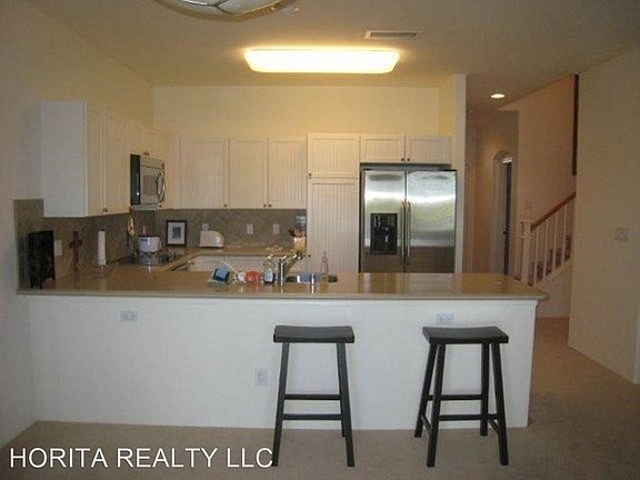 Ocean Pointe where you want to be - SPACIOUS, 1455 SQ FT, 3 BD, 3 BA, 2-CAR GARAGE, Town Home in OCEAN POINTE with 2 HUGE, Covered Lanai?s looking out toward the HOAKALEI GOLF COURSE. CENTRAL A/C. The upstairs covered lanai is a balcony off the master suite w/an INCREDIBLE VIEW. Master bath w/separate shower stall & tub, marble flooring & plantation shutters. Very large walk-in closet in master bedroom with large mirrored closet doors in other bedrooms. BEAUTIFUL kitchen with stainless steel appliances, side by side refrigerator w/water & ice dispenser, double stainless-steel kitchen sinks, disposal, oven/range, dishwasher, and microwave. Full Sized washer & dryer. PRIVATE YARD. Community pool. Water, sewer, trash are included in the rent. One year lease with ?military clause?, good credit and renter's insurance required. No Pets, No Smoking. $20 application fee per adult. " For inquiries and showing appointments, please contact Laurie Suarez property manager at Horita Realty LLC. No Pets Allowed (RLNE5829321)