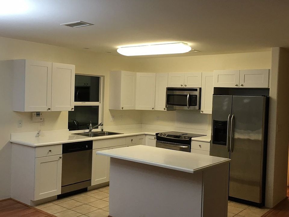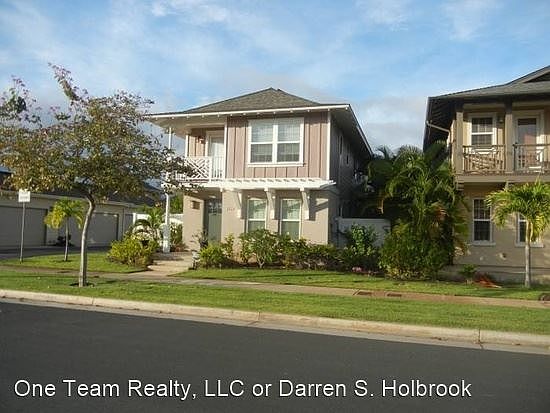 Large home in Ewa with 8 solar panels - 4 Bedroom, 3 bathrooms with 1 bed and 1 full bath downstairs. Solar water and 8 Solar PV Panels to cut down on electric bills. Energy efficient appliance and double pane windows. Separate 2 car garage with small yard between home and garage. Hardwood laminate flooring downstairs. Small covered lanai. Tenants must have renters insurance upon move-in and provide a copy to manager. Central AC system in the home. This is a newer Single Family home built in 2009. It has 3 bedroom upstairs and one bedroom downstairs along with 2 full bath rooms upstairs and one full bathroom downstairs. Solar water heater and 8 Solar PV Panels makes the average electric bill range from 90 to 120 dollars a month. It also has all energy saving appliances and light bulbs along with upgraded double pane windows. The kitchen has a center island with plenty of storage in the cabinets. Stainless steel appliances and tile floors finish off the kitchen. The house is wired for internet with a wireless router, the house comes with internet, basic cable and phone included in the rent. Each room has bedroom has cable and phone hook ups. Upgrade to HD and more channels for about $10 per month according to the owners. Each bedroom has a ceiling fan. The master bedroom has a walk in closet with a closet organizer. Dual vanity sinks in both upstairs bathrooms. The 2nd bathroom upstairs in between the two other bedrooms, a Jack and Jill bathroom. A small computer desk area upstairs by the balcony door. This is a corner lot with the back yard having fruit trees. Fenced in yard with a sprinkler system. The washer and dryer comes with the home and is in its placed in a separate room off the kitchen. The bedroom downstairs has hard wood floors. The upstairs is all carpet with the exception of the bathrooms. The two car garage comes with a garage door opener, storage shelves and a stand up freezer. Great walking, running, or biking along with level roads. The association has roving security cars that drive the neighborhood for added protection. Basic cable is included with 300 Mbs internet, 2 DVR's, HBO/Starz, Digital HD Package as of 1 March 2017 Solar water system and 8 Solar Panels helps to lower the electric bill. Energy efficient appliances. -Solar Water Heater -Cable/Internet/Phone included -Washer/Dryer included -Pool/Gym/Tennis Court access -Ceiling fans throughout -Stainless steel appliances -Tile/wood downstairs -Carpet upstairs -Deep Freezer included -WiFi connectivity (RLNE2037191)