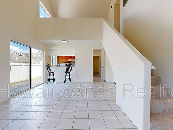 Located in Alii Court, this home has a fantastic location close to the Ewa by Gentry community pool and recreation facility, Holomua Elementary, and Iroquois Point Neighborhood Park. You'll find grocery stores, restaurants, movies, malls, and, of course, beaches all within a short drive. This 4 bedroom, 3 bathroom home has over 1,400 sf of living space with central a/c and attached garage. There are 3 bedrooms and 2 full baths downstairs and a 4th bedroom with full bath upstairs. You'll appreciate how spacious, bright and airy this home feels with vaulted ceilings in the living room plus a bonus lofted family room/den. With tile floors throughout the downstairs plus a fully fenced yard, this home is also pet-friendly. Carpeting was installed upstairs and the entire interior was freshly painted in 2022. Beautiful stainless steel refrigerator, range, and range hood are also new as of 2022. Amenities: Fenced Yard, Attached Garage, Central Air, Pet-Friendly, Community Pool & Recreation Area