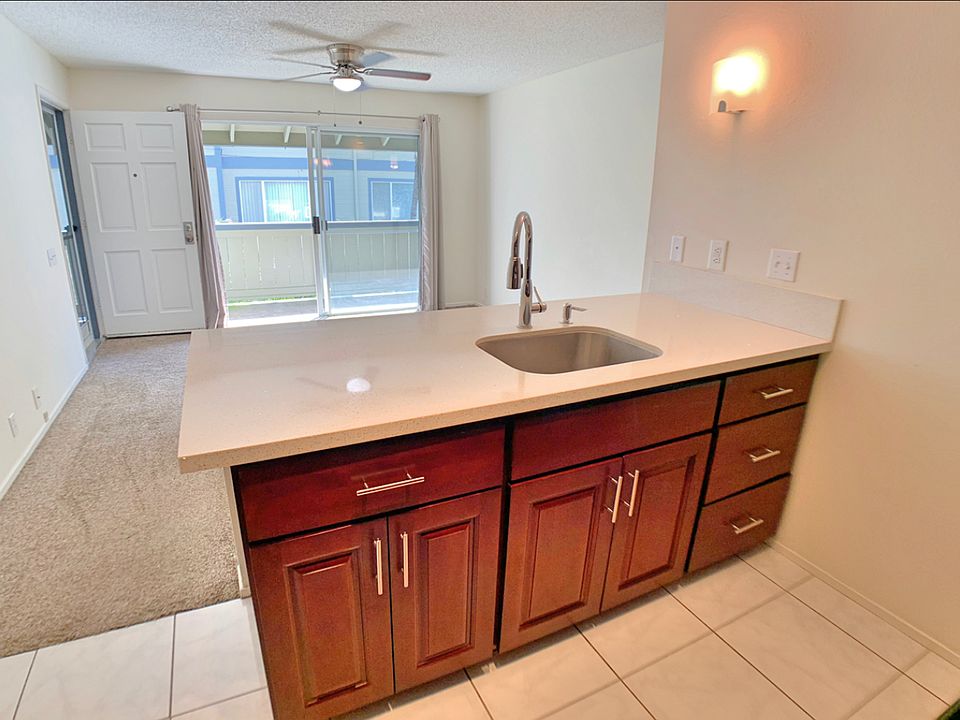 Inquiry by emails only. Rarely available light and bright 1 bedroom 1 bath upstairs corner unit located in Sun Rise. This home was remodeled in 2018 with new kitchen cabinets, quartz countertops, new tile shower/tub combo and vanity sink. Conveniently located near Kai Makana Ali'i Mall, grocery stores and restaurants. Don't miss out on this great opportunity to rent a move-in ready home in one of Ewa's most popular neighborhoods. Showing is scheduled at 3:30 on 1/31 by appointment. Please email for viewing. Minimum 1 year required, sorry no pets no smoking allowed in the unit. Street parking may be available if you have a second car but no guarantee. Gas, electricity and cable are tenant responsibility. Credit check and proof of income must.