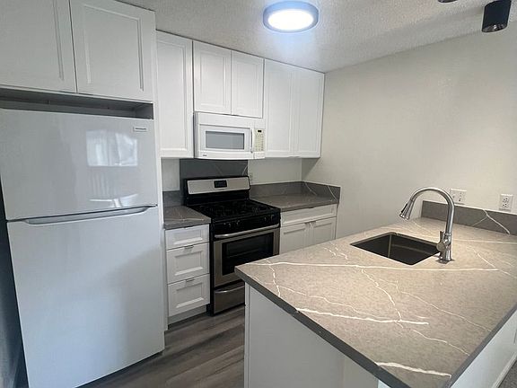 Don't miss out on this 1 bedroom 1 bath townhouse that was freshly remodeled with Brand new kitchen cabinets, brand new quartz counter tops, new bathroom vanity and counter, new carpet in living and bedroom, new vinyl plank in kitchen and bathroom, new lighting in kitchen, bedroom and bathroom, AC in living room and bedroom, outside lanai and extra storage. This unit is the second floor and comes with one parking. Complex has a swimming pool and rec area for tenant's use. It is very conveniently located to park, Foodland complex with coffee shop and multiple restaurants. Property has gas stove and water heater, Comes with all appliances and washer and dryer in unit. Tenant pays for gas, electric, cable/internet (optional) Available beginning of September for occupancy Rental insurance is required