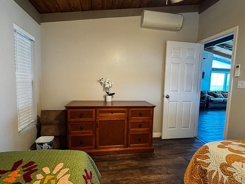 The renovated kitchen features beautiful countertops, stainless steel appliances, a large island, and lots of cabinets for storage. The spacious master bedroom features access to and views of the ocean with its own private bathroom, AC. Updated bathrooms have walk-in showers. There are 2 other bedrooms, both with AC. This single-family home has large living room with AC, open beam ceilings, a large driveway, in addition to the carport, for extra parking. There is also a lawn and garden space to enjoy. Great location, just a short drive to parks, schools, & shopping center.