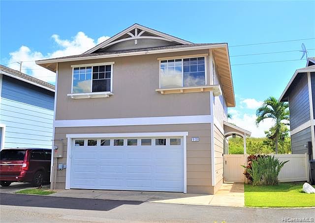 Rarely available 3-bedroom, 2.5-bath home on perimeter lot at highly desirable neighborhood of Ewa by Gentry Las Brisas. This beautiful home features 31 leased PhotoVoltaic (PV) Solar panels through TESLA for low montlhy electricity bills, solar water heater, stainless steel appliances, washer and dryer, central AC with new HVAC system still under warranty, ceiling fans, fully fenced and landscaped backyard, sprinkler system and spacious 2-car garage with cabinets. Access to ample guest parking, parks, swimming pool and recreation area. Close to Beaches, Shopping, Golf, Schools, Dog Parks, Restaurants and more. This cozy and beautiful home will not last long. CONTACT US TODAY!