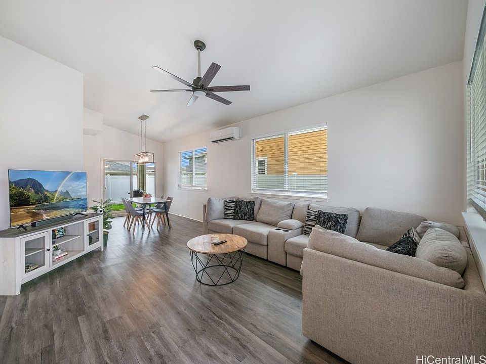 HUGE PRICE IMPROVEMENT! Welcome to Ho'opili's sought-after community where this captivating 4-bedroom, 2.5-bath home awaits. This beautifully designed residence perfectly blends modern comfort and convenient amenities. Step inside and be greeted by the elegant vinyl plank floors that adorn the entirety of the first floor, creating a warm and inviting atmosphere. As you go upstairs, the plush carpet embraces your every step, providing a cozy feel and a touch of luxury. The split AC system ensures year-round comfort in every room. 25 panel PV (leased) with Tesla battery. With stainless steel kitchen appliances, your culinary endeavors are elevated to new heights, while the EV plugin caters to your eco-friendly lifestyle needs. Community amenities include a pool, BBQ area, keiki park, recreation room, and dog park. Indulge in the convenience of being just moments away from Ka Makana Ali'i a premier shopping and dining destination. Additionally, the close proximity to the rail station ensures easy commuting for work or leisure. Next Open House, Sun, June 4th, 2pm-5pm.