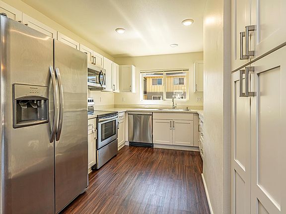 Great Unit with Lots of Possibilities. GROUND FLOOR consists of Front and Back Door, Washer Dryer, Studio Type Bedroom with split ac, full bath, and wet-bar; SECOND FLOOR, kitchen, dining, and living room half bath and small lani, split ac and ceiling fans; THIRD FLOOR, master bedroom/bathroom, guest bedroom and full guest bathroom. Kitchen features stainless steel appliances quartz counter tops and white cabinetry, Main living area and downstairs bedroom is wood laminate flooring, Stairwell and third floor bedrooms have carpet, there are wood faux vertical blinds throughout the home. A 1 car garage and 3 additional parking, located right outside back door, complete the 4 parking spaces included! Up and Coming neighborhood located close to shopping, freeway on-ramp, schools, and community centers Pets are negotiable