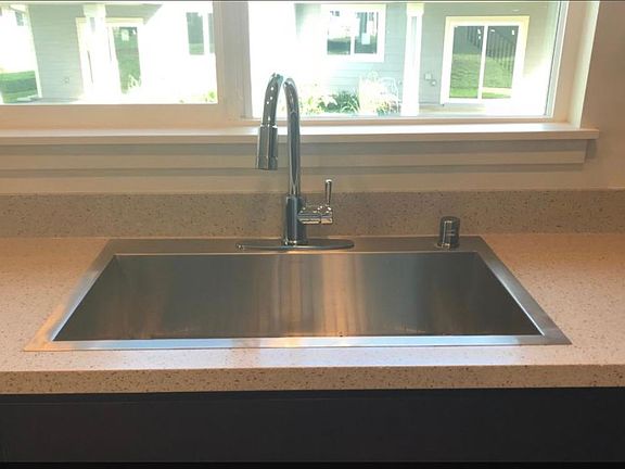- Guests and family can enjoy the sit-down central island with contemporary pendant lighting.