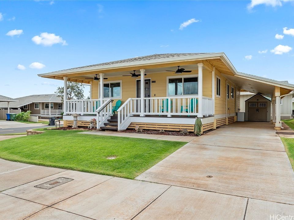 ****VA ASSUMABLE MORTGAGE AVAILABLE***** Welcome to this beautifully maintained, single-level plantation-style home in Ho'opili. Step inside to find a thoughtfully designed interior featuring high-end stainless steel appliances, elegant luxury vinyl plank flooring, upgraded window treatments, ceiling fans, and split AC units in the living area and all bedrooms for ultimate comfort. The expansive front lanai and carport make a perfect setting for outdoor gatherings, complete with covered under-house storage for added convenience. Relax and enjoy the gentle island breeze or catch up with neighbors in this warm and welcoming community. Just a short walk to the community pool or one of the nearby parks, with easy access to Ka Makana Ali'i shopping center and the stunning west coast beaches. Schedule your visit today to see all this home has to offer! Furniture negotiable.