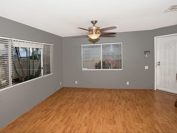 Beautiful 3 bedroom 2.5 bath home with 5 parking spots (2 car garage, 2 drive way, and a parking pass). Laminate flooring throughout and tile in all the bathrooms and kitchen. Tropical, landscaped, fenced in yard for privacy, children and pets. Built in cabinets in garage. Great neighborhood with community pool. 17 PV Panels and water heater pump. Updated restrooms and kitchen cabinets.