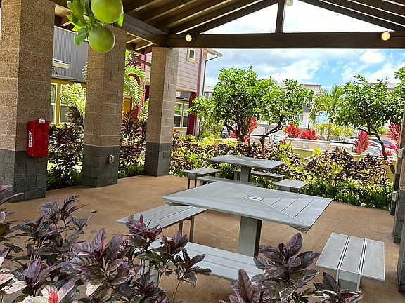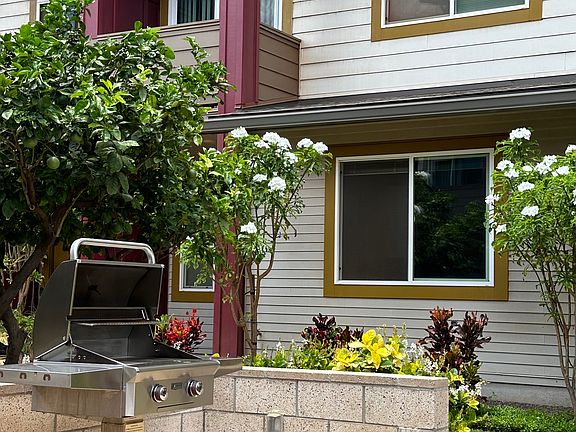 Welcome Home to Kaikea at Ho'opili! Built in 2022, Kaikea at Ho'opili offers some of the largest townhomes in Ewa Beach. Rarely available for lease, Unit 802 is 3-stories with enclosed single car finished garage + additional reserved uncovered parking stall. Two lanais: the fenced back lanai with grass and sprinklers and second floor covered lanai overlooking the open and covered courtyard below with BBQ grills and garden seating surrounded by lush greenery and fruit trees. All 3 bedrooms have en suite private bathrooms plus an additional half bath near the expansive Great Room. The ground floor bedroom has a bonus kitchenette with mini refrigerator. The main bedroom has a walk-in closet, double vanity and standing shower with privacy door. The other 2 bathrooms have single vanity and shower baths. Stainless steel appliances, soft close drawers/cabinets and easy clean counter surfaces define modern kitchen efficiency. Enjoy the natural light, ventilation and a pleasing view from the window right at the large single bowl stainless kitchen sink. Split AC, double pane vinyl windows and smart home features together create convenient management of this home's energy efficient environment. Luxury vinyl and soft plush carpet throughout. Want more? Ho'opili has the SoHo Community Center with pool open to residents as well as event space available for rent. KROC Center with gym and water park requires membership but the soccer park is free to all. 3 HART Light Rail stations are nearby. Within 4 miles is Ka Makaina Ali'i which has 122 stores and restaurants. This incredible home is less than 7 miles to Barber's Point , 12 miles to Schofield, 15 miles to Shafter and 16 miles to Hickam. Don't wait! Come see and make this amazing townhome yours! Tenants are responsible for water/sewer, electricity, cable/internet & once a month small yard cleaning fee. Owner pays for once a year termite & AC check and bimonthly pest treatment. Uncovered parking stall, access to pools & BBQ grills included with rent. Tenant pays for SoHo Community Center event space rental & KROC Center gym & waterpark. One year lease. Application Fee $32 per adult. No smoking please. Pets negotiable.