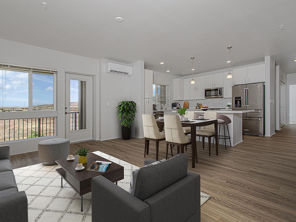 Brand new 2-bedroom, 2-bath+den, 2-parking residence in Nahele. Next to the Hoopili transit station park and ride, near parks, recreation centers, and possibly a future school. This single level floor plan of over 1,100 square feet has a den which can be used as a home office or guest room, an open kitchen with large island, and a covered lanai off the living room. Features vinyl luxury flooring, LG Hi-Mac countertops, stainless steel appliances, carpet in bedrooms, 3-split ACs, Home Is Connected - Smart Home system+ and energy efficient features. Lease terms are 6 months. NO PETS.