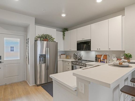 This 2 bedroom/2 .5-bathroom townhome consists of 1,266 square feet of net living area. Enter to your open living room which seamlessly flows into a generous kitchen straight through to your private yard. The kitchen features stainless steel appliances and white soft-close cabinets. Bedrooms are on opposite ends for privacy. Split air conditioning and modern appliances including a range/oven, micro-hood, dishwasher, refrigerator, and washer/dryer allow for ease of living.