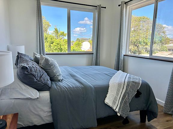 Ideal for travel nurses, digital nomads, tech consultants, and working professionals. 3-6 month lease and month to month after that. Located only 10 minutes from Queens West Medical center and the Skyline Rail station. Nearby Costco, Sam's Club, local markets and restaurants. Fully Furnished our unit is located upstairs with a private entrance, attached to the main house. 1 parking stall on property. This cozy property features 2 bedrooms with a queen bed and a full bed, along with a cozy living room with a sofa bed for extra guests and a private balcony to relax and watch the sunsets. The bathroom is equipped with a hair dryer, towels and a shower for your convenience. A small kitchen fully equipped with a 2 burner induction stove top, microwave, airfryer/ toaster, Krueger coffee maker, Ninja blender, rice cooker, and a medium refrigerator to store your food. Enjoyable amenities like WiFi, AC, yoga and a washer/ dryer combo machine are provided to make your stay peaceful and stress-free. Surfboards and cars available for rent. Yoga is included with your stay. Neighborhood roosters roam and crow freely all over the island. Walking distance to the beach to swim or surf, watch the sunsets and sunrises.