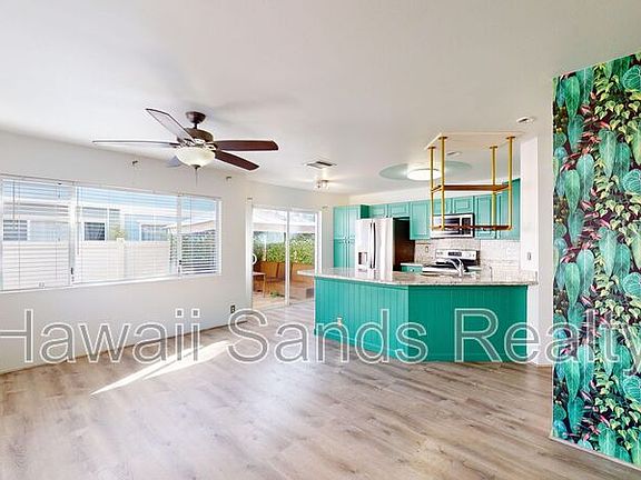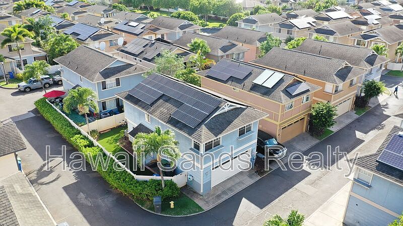 Welcome to this Charming energy efficient 3 bedroom, 2.5 bathroom home with attached 2 car garage located in "las Brisas" in Ewa Beach. This house features a community pool and park for your enjoyment, as well as 32 photovoltaic panels!! to help save on energy costs. The home has a modern kitchen that comes equipped with a dishwasher for convenience, pantry, designer accent wall for an added touch of the island feel, outside lanai for enjoyment, turf grass for low maintenance yard, large primary bedroom with walk in closet, central air conditioning to keep you cool, washer & dryer in the unit for added convenience. The pet-friendly policy allows for furry friends to join you in your new home. Don't miss out on this wonderful opportunity to make this house your new home! Amenities: Community Pool, Community Park, 32 Photovoltaic panels, Dishwasher, Washer/Dryer in Unit, Pet-Friendly, Vinyl plank flooring downstairs, Central Air, low maintenance yard