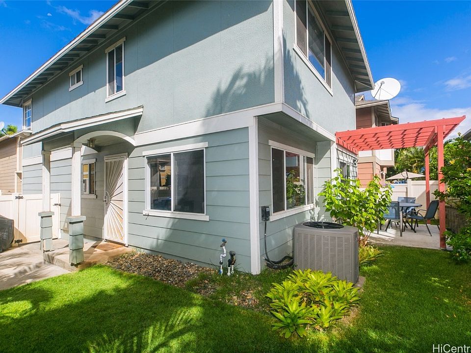 This beautifully maintained large corner home with 3 bedrooms, 2 and a half baths features a plethora of upgrades, including newer kitchen counter tops, sink, faucet and flooring; completely remodeled primary bath with walk in shower (2023), hallway bath (2022), washer/dryer upgraded (2021), an A/C that is less than 5 years old, and much, much more. See attached SRPDS for the complete list of upgrades. Enjoy cold drinks and a BBQ on your HOA-approved extended lanai with pergola built in 2020. Run that A/C full blast because ***32 OWNED PV Panels*** will keep your electric bill to a minimum. Take advantage of the many amenities Las Brisas and the surrounding area has to offer, including a playground, dog park, community pool and lots of green space, world class golf, great restaurants and Hawaii's largest surfing wave pool, The WaiKai LineUp !!