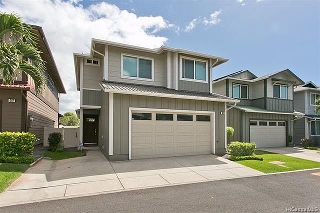 Wonderful 3 bed 2.5 bath two-story home in the highly desired Parkside by Gentry community! Spacious layout with 9' high ceilings includes delightfully updated open kitchen with island and ample cabinetry. Energy efficient living with 10 (OWNED) PV Panels, solar water heater and central AC. Backyard perfect for entertaining or lounge on the covered lanai with your favorite book. Just minutes away from the Ka Makana Ali'i mall, schools, restaurants, shopping center and golf courses. Stop by today and fall in love with all this home has to offer you!