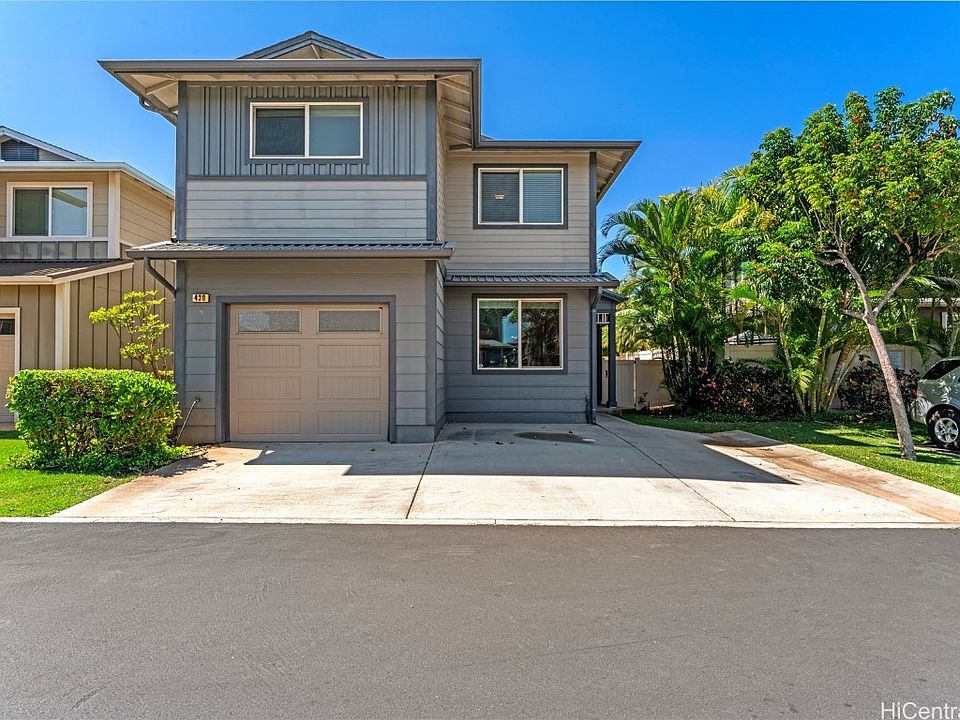 Who needs new, when you can have it ALL! Large floor plan, Central A/C, full bed/bath downstairs, deluxe primary retreat, fenced in yard, 3+ car parking & owned solar panels w/ Tesla battery! Picture coming home to a refreshing sanctuary, free from the worry of high electricity bills after a long day's work. This 2-story home boasts an abundance of natural light and features an open-concept living area that seamlessly flows into the dining and kitchen spaces. The kitchen is a chef's dream, equipped with ample cabinet storage, Corian counters, and 2 convenient pantries. Upstairs, you'll find 3 of the 4 bedrooms, including a generously sized primary retreat with a walk-in closet, en-suite, and a private extension perfect for an office or nursery. Your new home and community is very conveniently located! The home is just steps away from the community pool & on a corner lot right next to plenty of visitor parking. The neighborhood is in close proximity to both a middle & elementary schools, the brand new Wai Kai Wave Park, Ka Makana Alii Shopping Center, restaurants, medical center, golf courses and much more. Call your Realtor & schedule your private showing today!