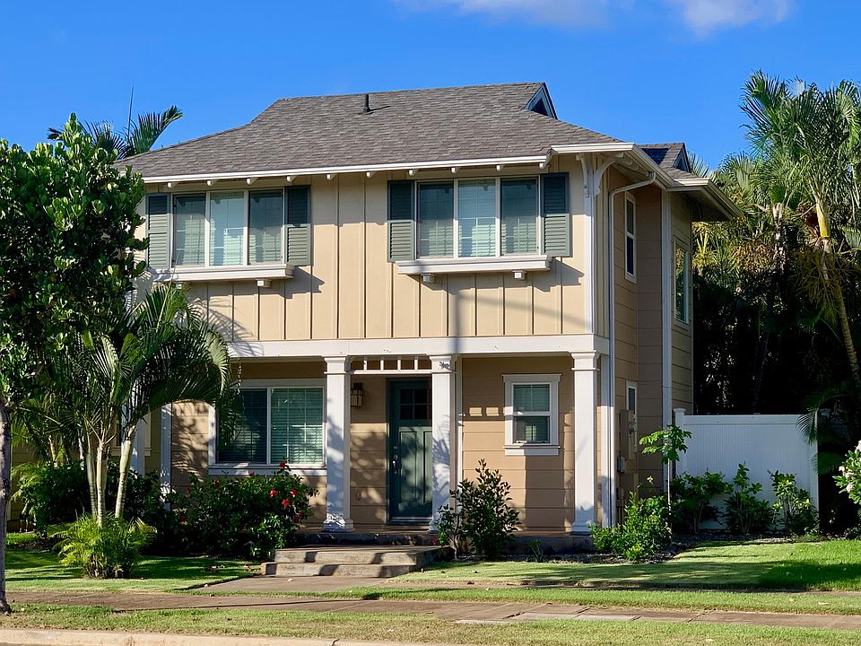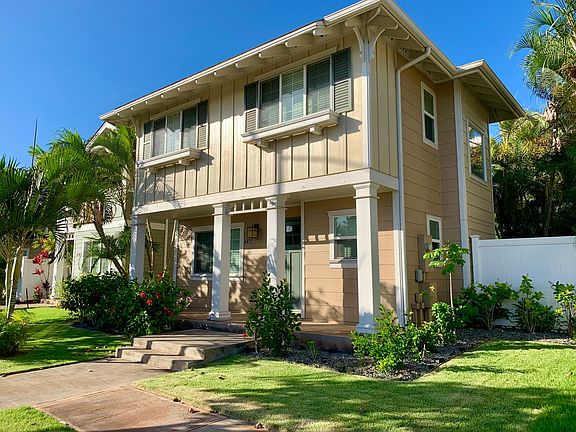 It is a well-maintained two-story house in the beautiful Ocean Pointe neighborhood with 3 bedrooms, 2.5 baths, a den which can be converted into another room, 2-car garage, fully fenced low maintenance yard, with central AC and ceiling fans in all rooms. Just painted professionally inside and installed luxury vinyl plank flooring, all done in July 2021. There are 4 guest parking stalls at the back of the property. Close to schools, Post Office, restaurants, stores and golf course. Front and back yard maintenance included. No pets, no smoking and renter's insurance required. House is in excellent move-in condition and is ready for occupancy now. *If you are not in Hawaii yet, this may not be the home for you. Owner is looking for a tenant now. Tenant pays for utilities.